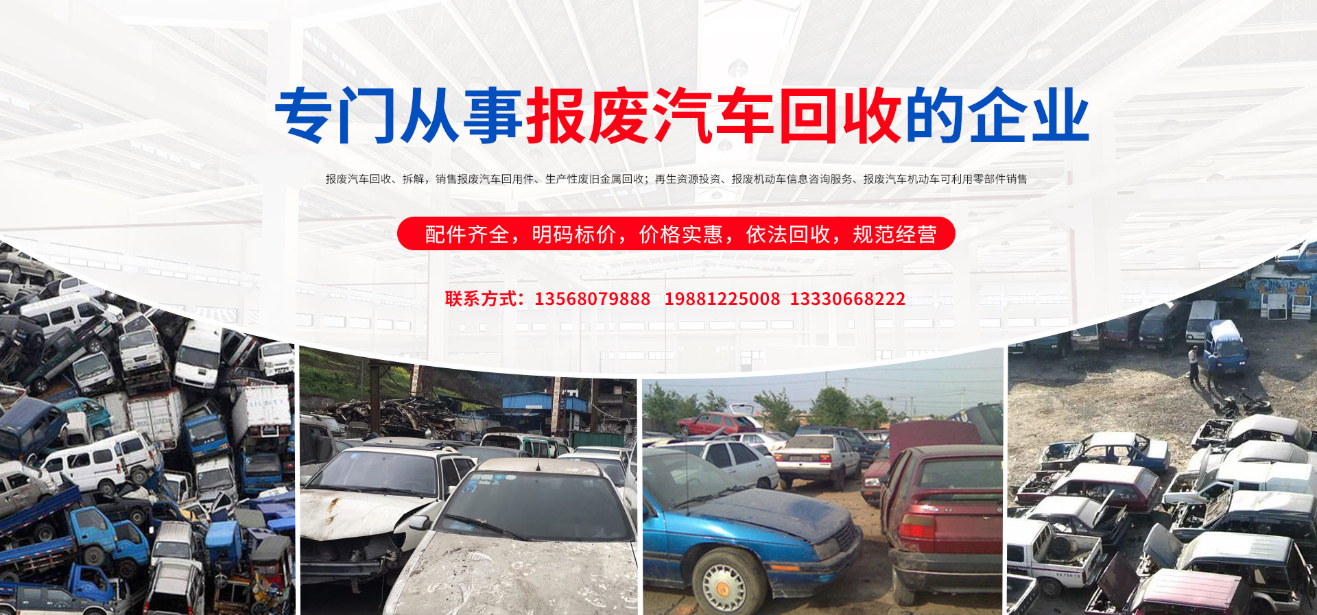 我公司在報(bào)廢汽車(chē)回收拆解中,認(rèn)真貫徹執(zhí)行國(guó)家法律法規(guī),嚴(yán)格執(zhí)行國(guó)務(wù)院令第307號(hào),積極開(kāi)展行業(yè)自律,依法回收,規(guī)范經(jīng)營(yíng),從源頭上控制了報(bào)廢汽車(chē)整車(chē)、拼裝車(chē)、“五大總成”等上路和重新流入市場(chǎng)的現(xiàn)象,為緩解我市資源短缺,減輕環(huán)境污染,促進(jìn)資源循環(huán),維護(hù)人民群眾生命財(cái)產(chǎn)安全和道路交通安全起到了巨大的作用。